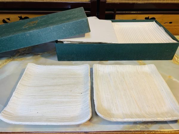 > 未使用 新品 前畑陶器 庫山窯 粉引刷毛目 取皿 5客 菓子皿 小皿 角皿 プレート 五枚組 お洒落 素敵 希少 廃盤品 @2fho7