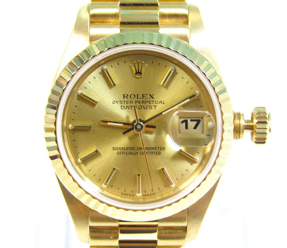 > 国際保証2年 ROLEX デイトジャスト 69178 ロレックス オーバーホール済み シャンパン文字盤 L番 750 K18 金無垢 自動巻き サービスカード