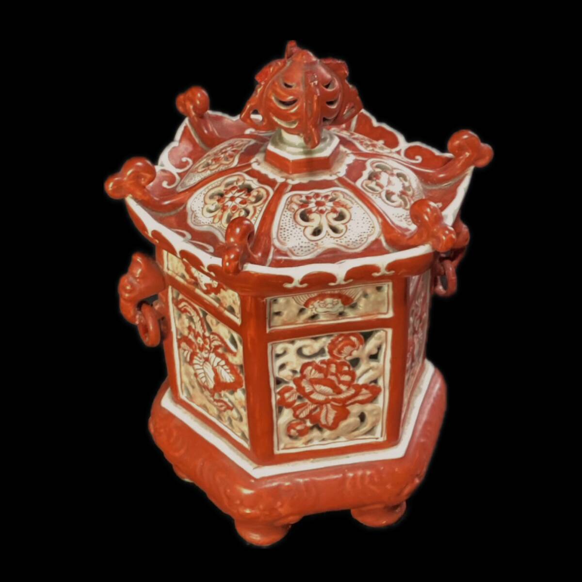 - 幻の焼物 越中丸山製 赤絵香炉 幕末〜明治前期 丸山焼き