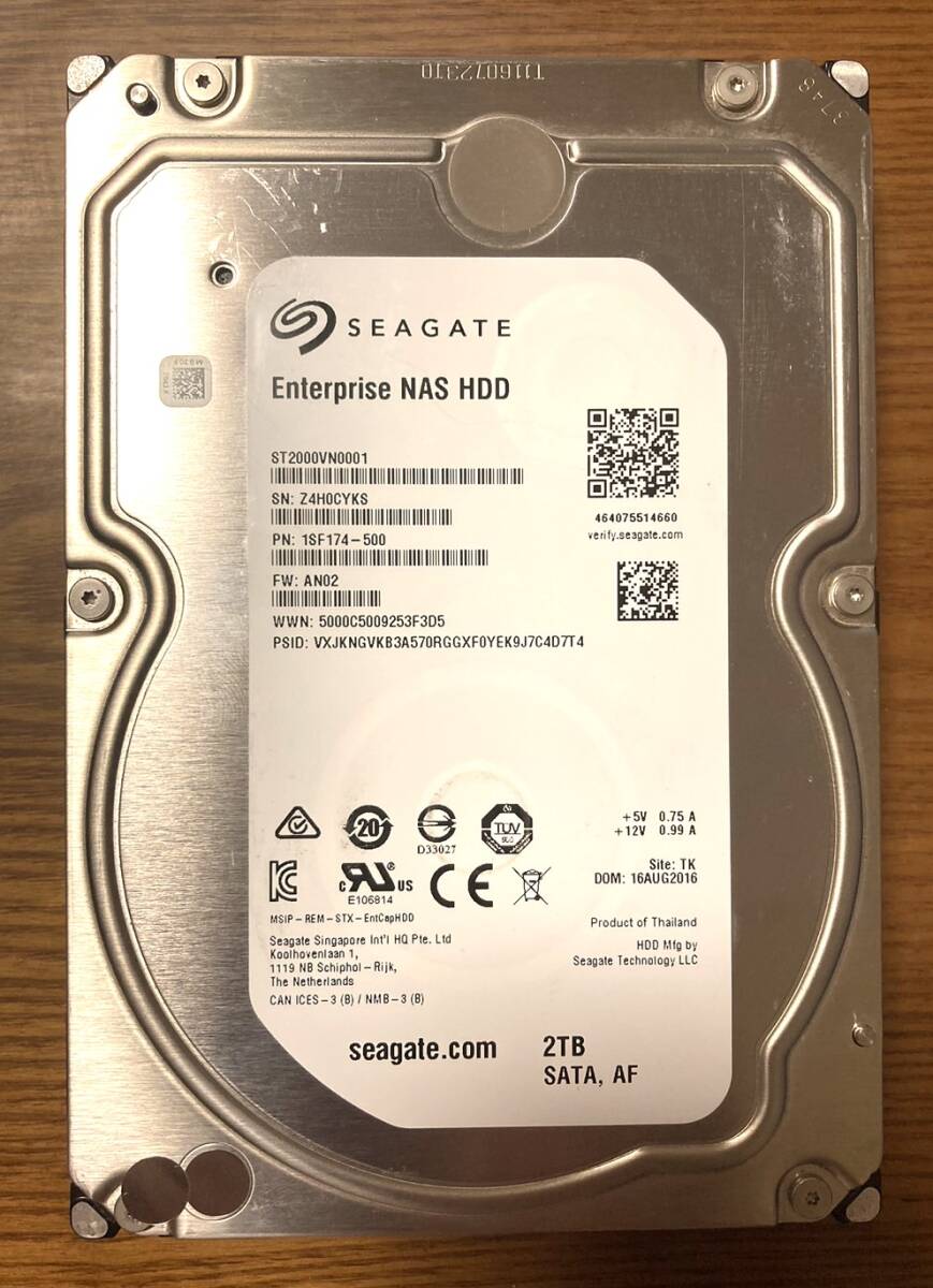 - 【状態◎】Seagate シーゲート Enterprise NAS HDDシリーズ ST2000VN0001 3.5インチ HDD 2TB(NASソリューションに適したHDD)