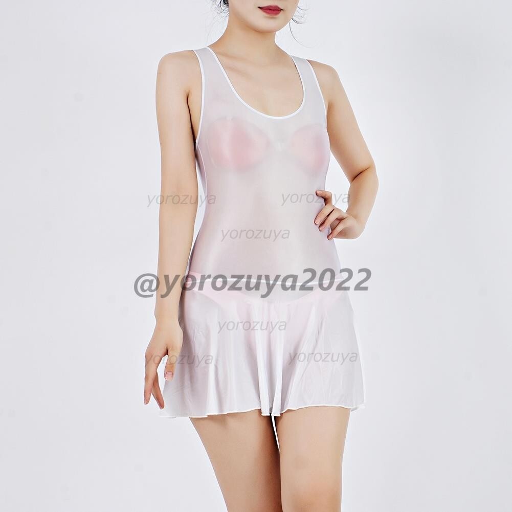 > 158-271-25 光沢 ツヤツヤ ピタピタ シルキー ドレス ワンピース【ホワイト,XL】セクシー コスプレ エロ ランジェリー コスチューム .1