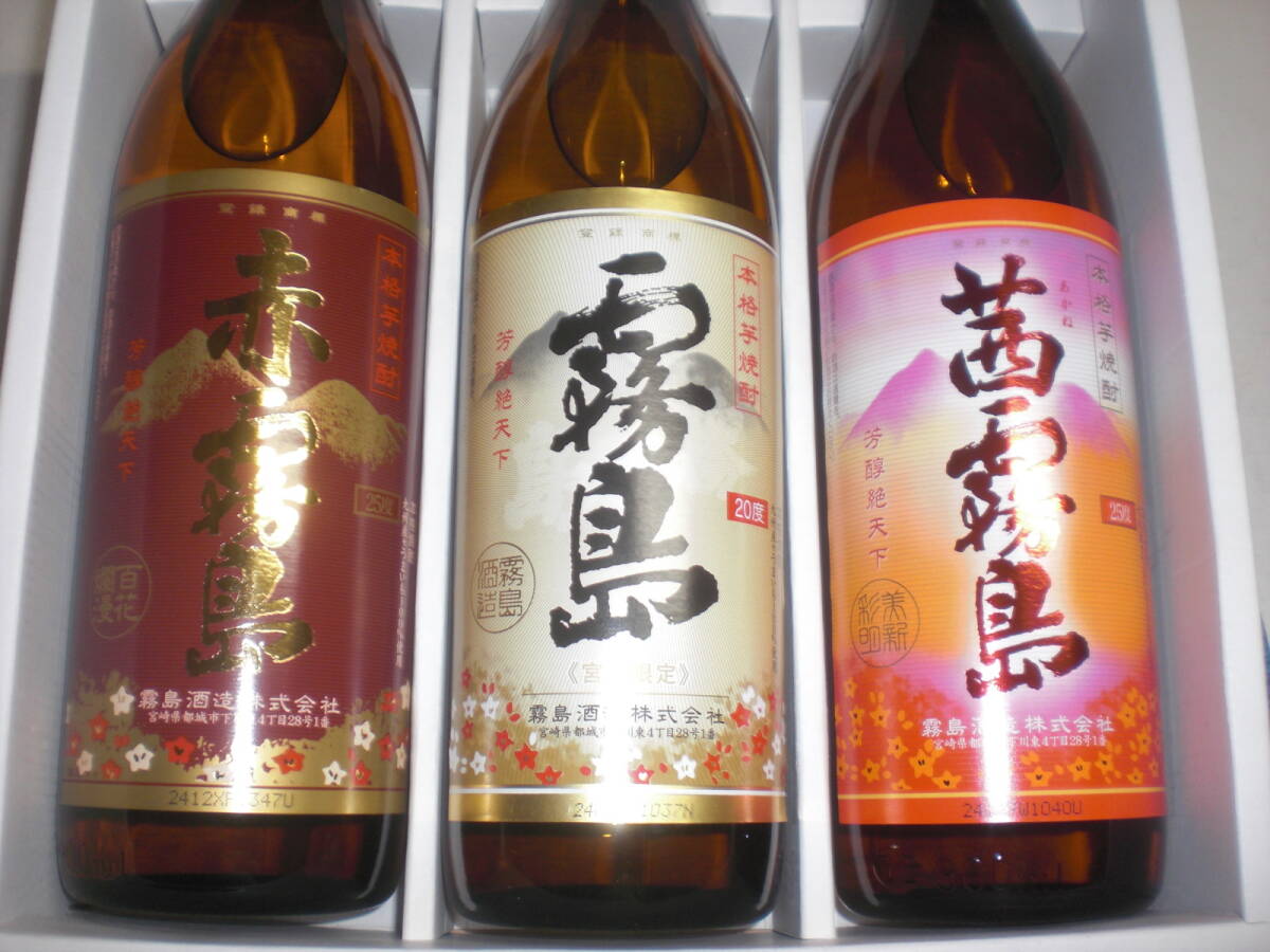 - 赤霧島、霧島、茜霧島3銘柄セツト価格本格芋焼酎宮崎産化粧箱付き北海道除く送料込