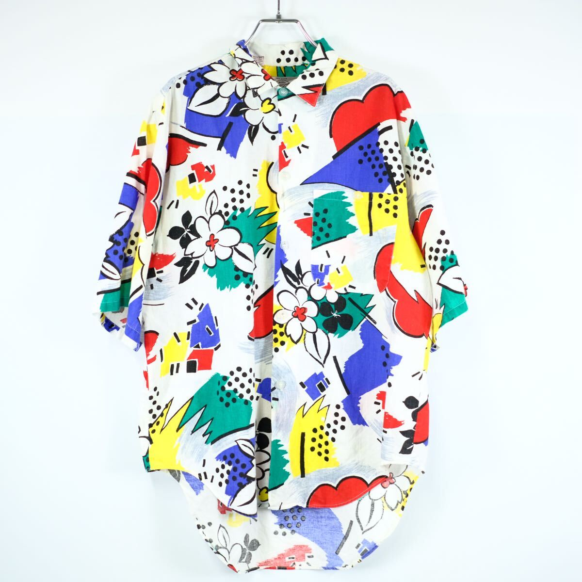 > 1980s USA製 半袖コットンシャツ 花柄 アート マティス カラフル 古着屋 90s デザイン マチス オーバーサイズ コットン