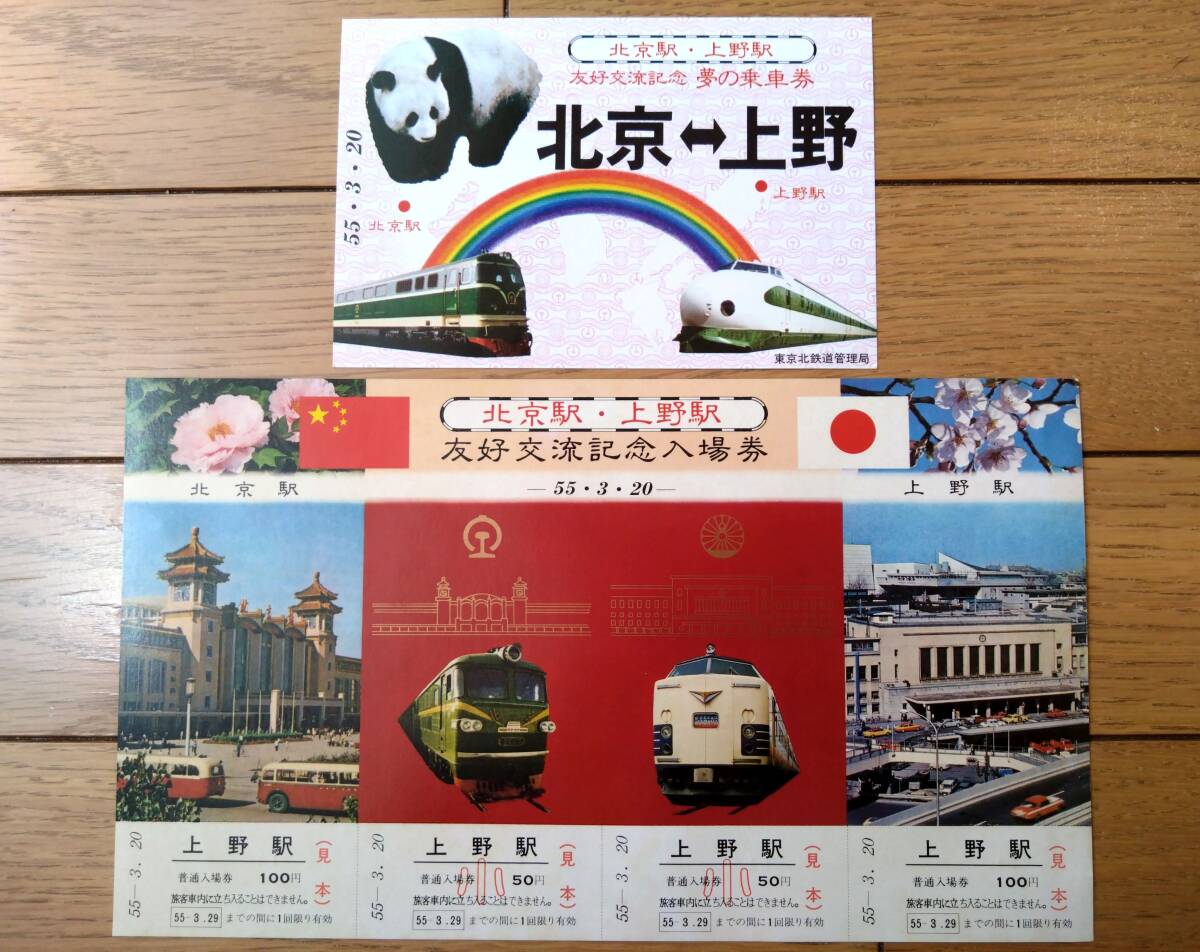 - 未使用【北京駅・上野駅友好交流 記念入場券(見本4枚セット)】東京北鉄道管理局(昭和55年3月20日)