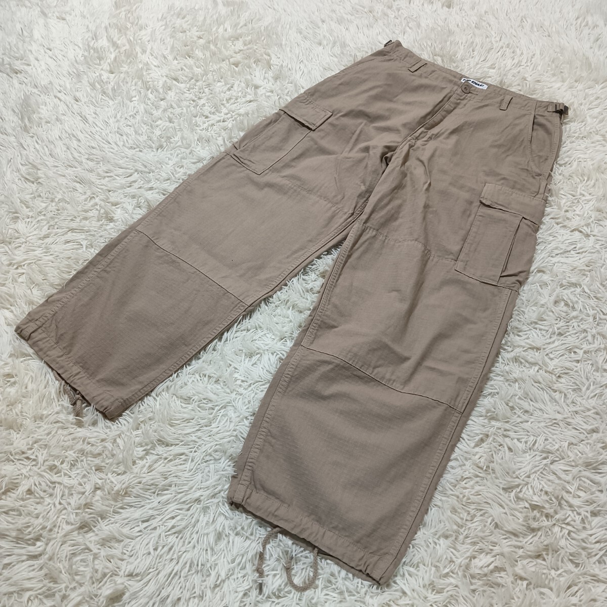 > 美品★JOHNBULL TOPKHAKI ジョンブル ダブルニー リップストップ カーゴパンツ ミリタリー ワーク 6P ボトムス ベージュ サイズM 古着 USED