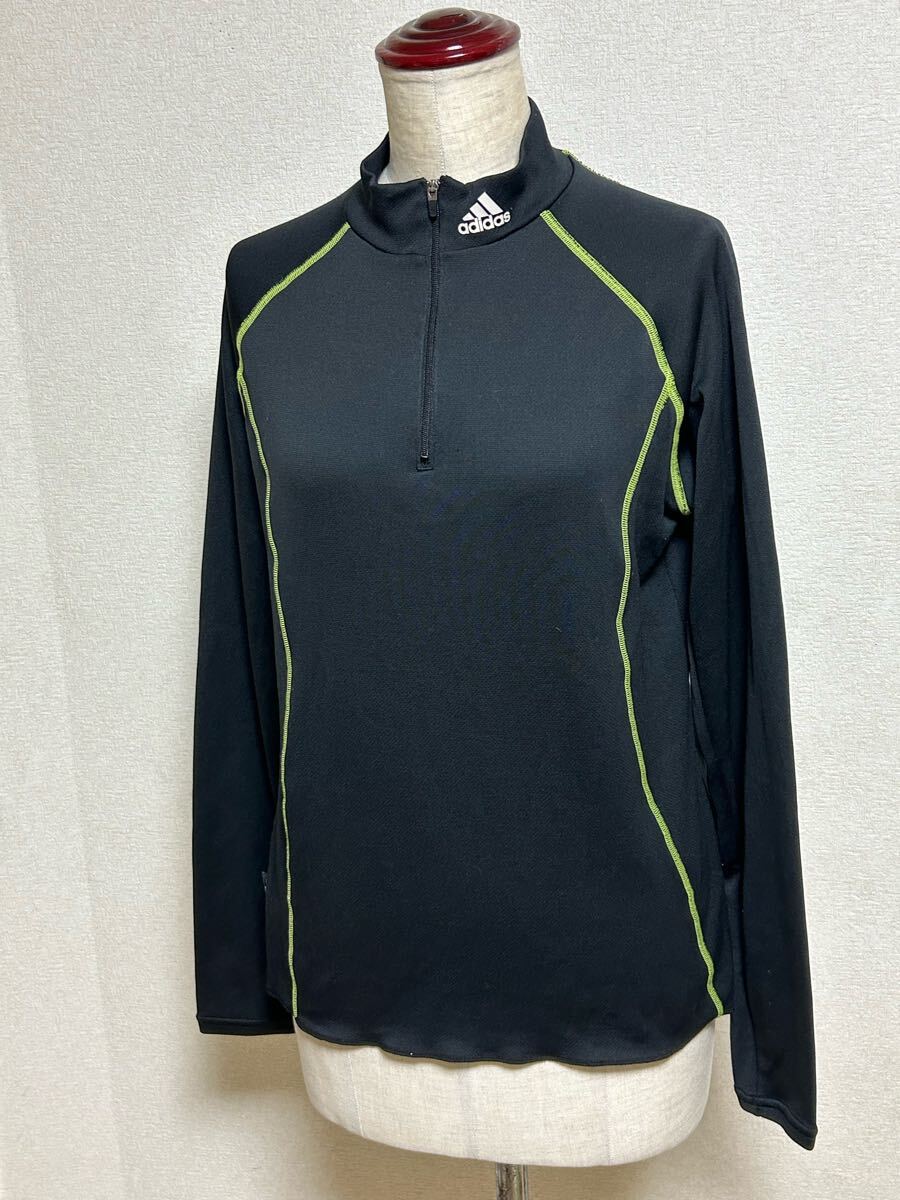 - レディース【adidas ★アディダス】トップス・ハーフジップ・伸縮性・フィットタイプ・薄手・Lサイズ・送料180円