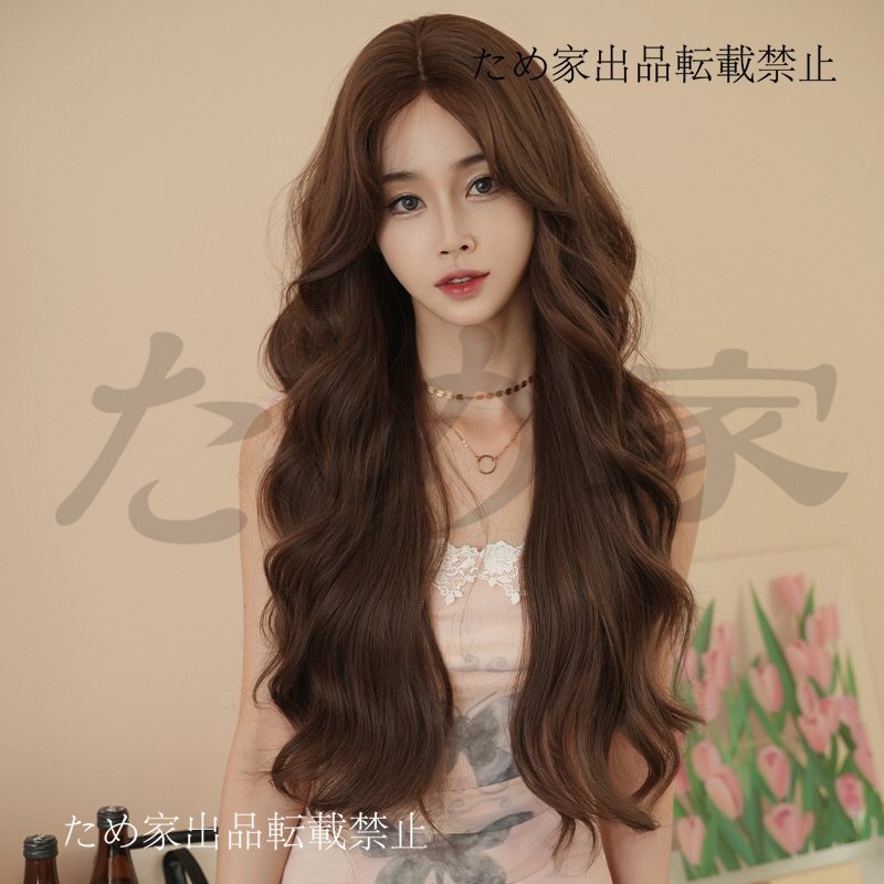 - 新品人毛 ロングカール センター分け レースフロントウィッグ ミルクティーブラウンカラー つむじ部分手植え 自然に見えますフルウィッグ