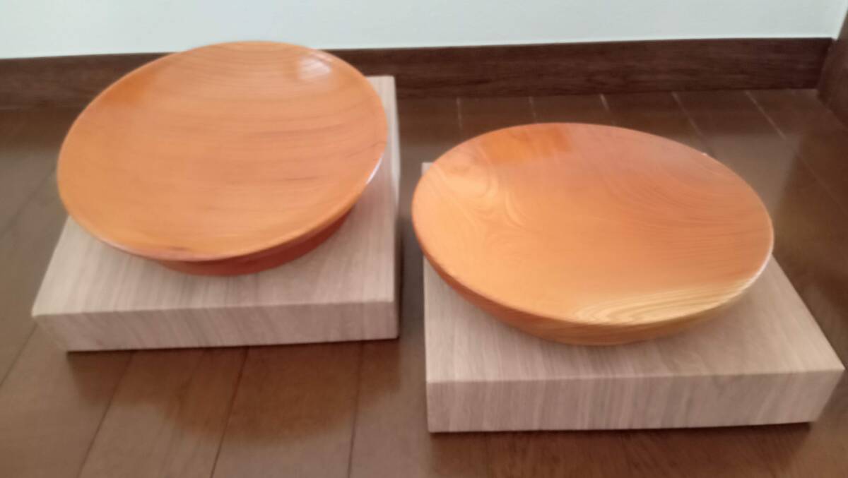- 貴重 レア レトロ 1本の木から作られた貴重な盛皿 高台皿 2種 木目 年輪 直径約20cm 高さ約4.5cm 未使用 茶道具 菓子器
