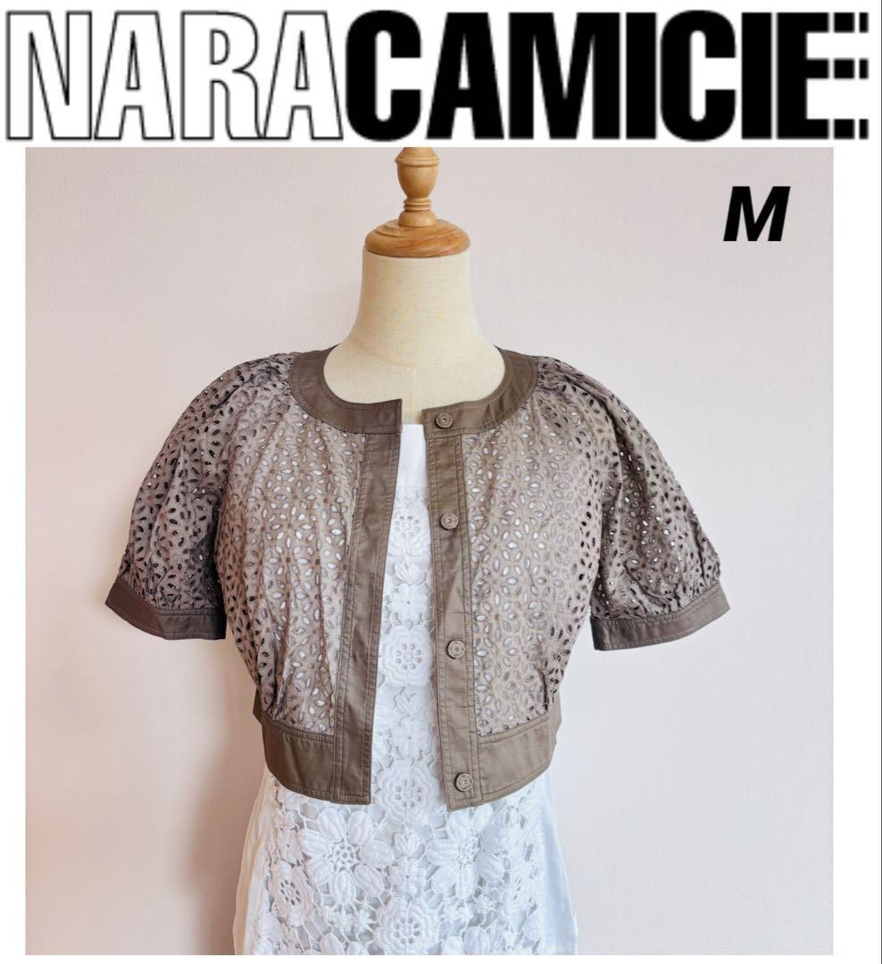 - Rosa×naracamicie ローザ ナラカミーチェ フラワーカット パフスリーブ ショート丈 ポレロ カーディガン M カーキ