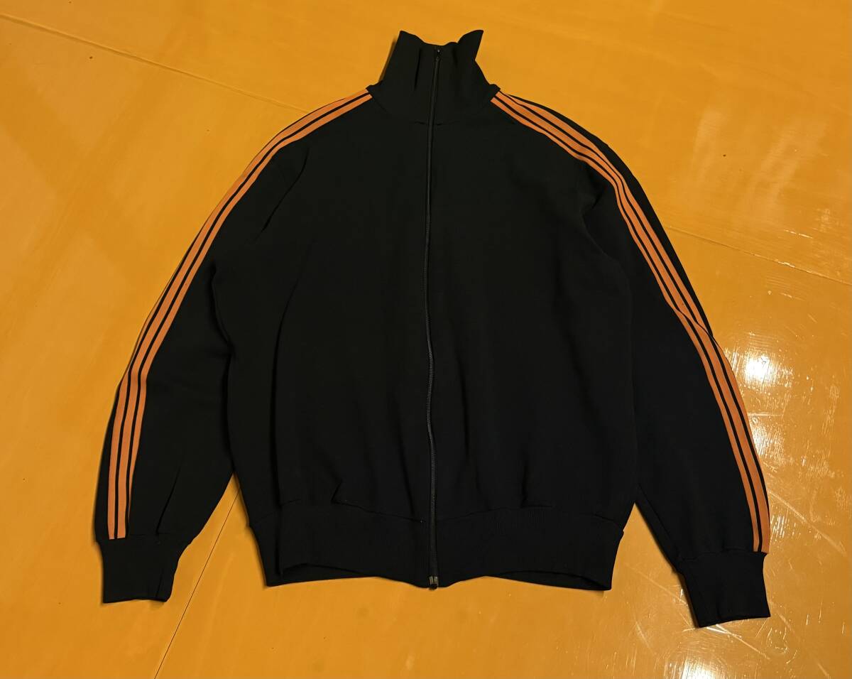 > 70s adidas 西ドイツ デサント製 トラックジャケット ジャージ size 5ブラック オレンジ Ziplon ヴィンテージ 古着