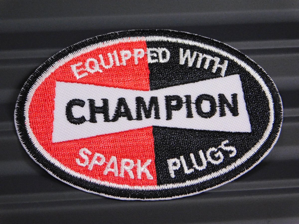 > ◆送料\110◆【CHAMPION・チャンピオンプラグ】※《アイロン刺繍ワッペン/オーバル型》 アメリカン雑貨 刺繍ワッペン アイロンワッペン