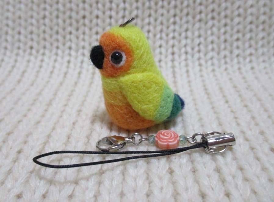 > ハンドメイド 羊毛フェルト コガネメキシコインコ ストラップ ぬいぐるみ 置物 ミニチュア フィギュア 鳥 リーメント ドール用 ペット 野鳥