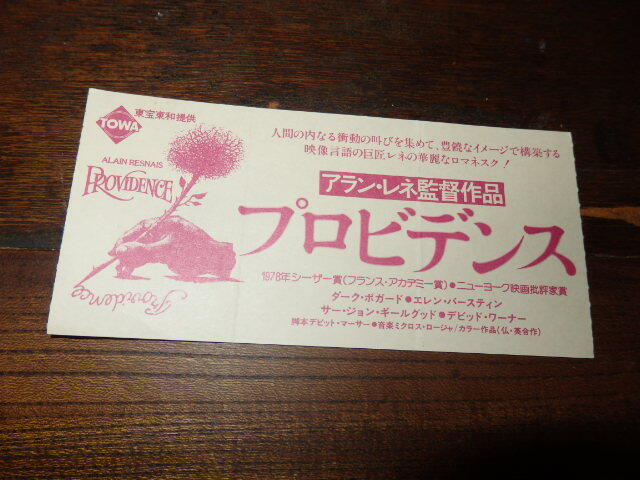 - 映画半券「y407 プロビデンス(折れ有り)」アラン・レネ監督 ダーク・ボガード エレン・バースティン