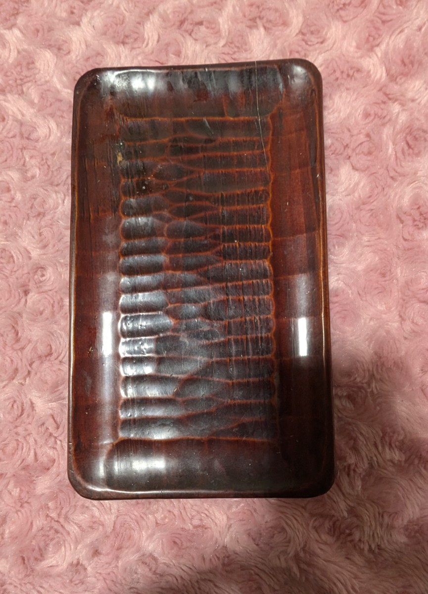 - レトロペン置き キャッシュトレー 漆塗り 手彫り 難あり