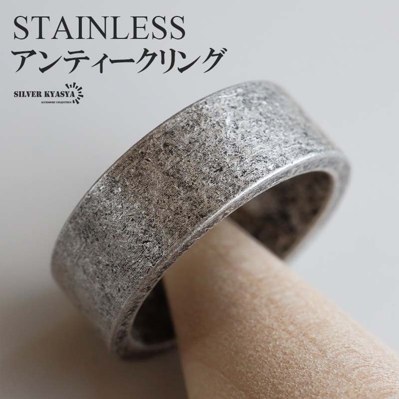 - (24号) コスパ最高 燻仕上げ 平打ちリング レトロ アンティークシルバー 燻リング メンズ 指輪 つや消しリング 金アレ対応