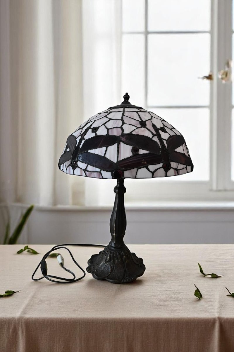 - ○パープルカラーのステンドグラス傘 スタンドライト 照明 トンボ模様 アールヌーヴォー ヴィンテージ 古道具のgplus広島 2505i