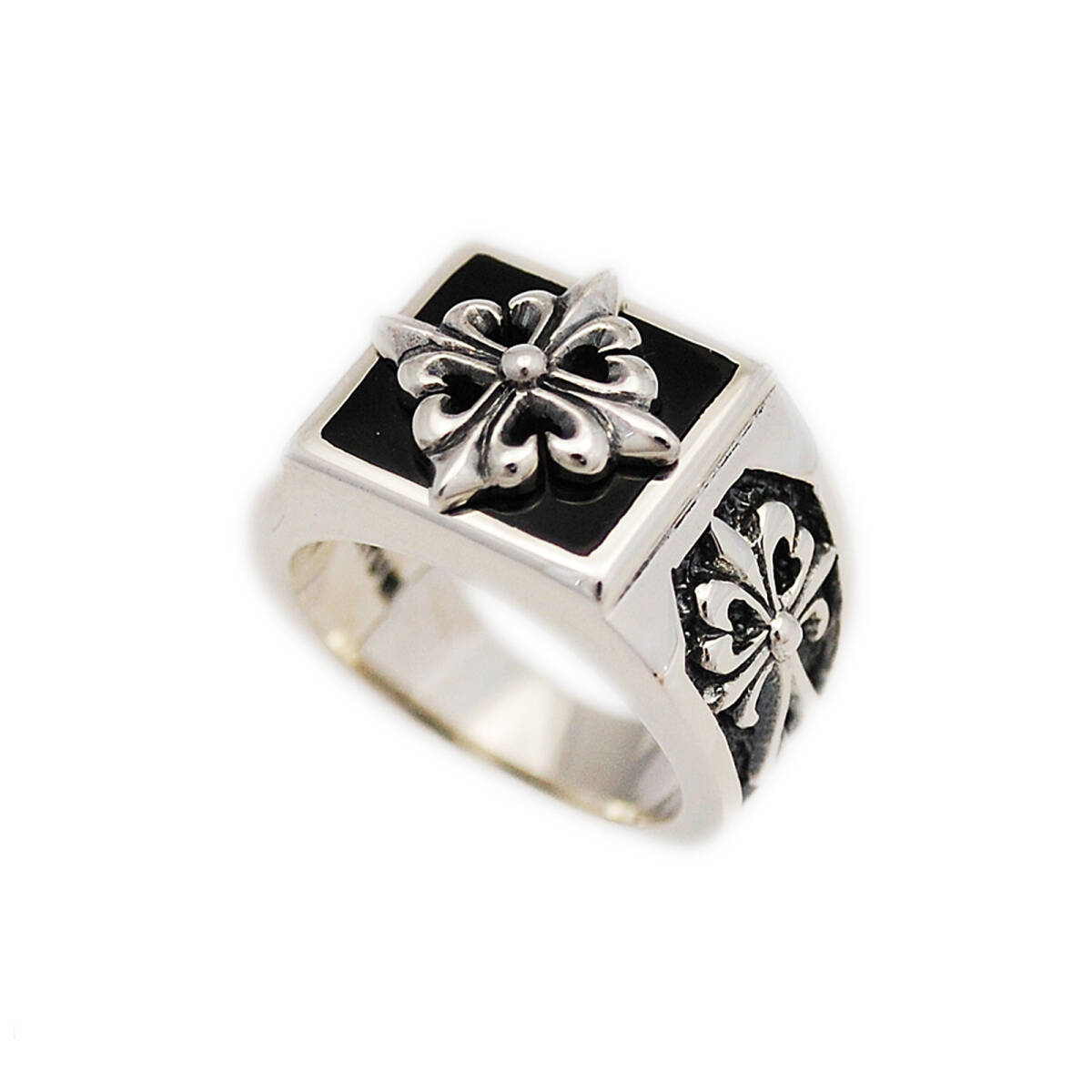 - 15号 21号 22号 天然オニキスクロス925シルバーリング 925刻印あり KS-R032