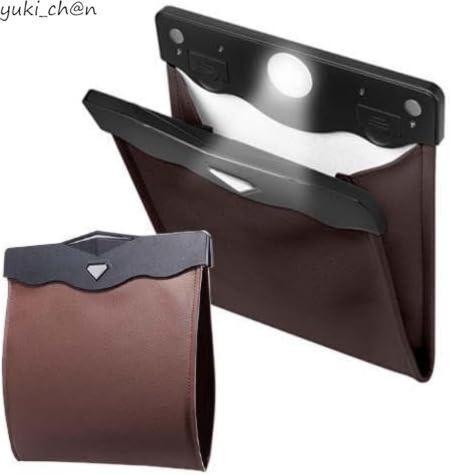 - 車 ゴミ箱 後部座席 多車種対応フック LEDライト マグネット カー用品 車載 高機能 大容量 収納 便利 ゴミ袋付き ブラウン
