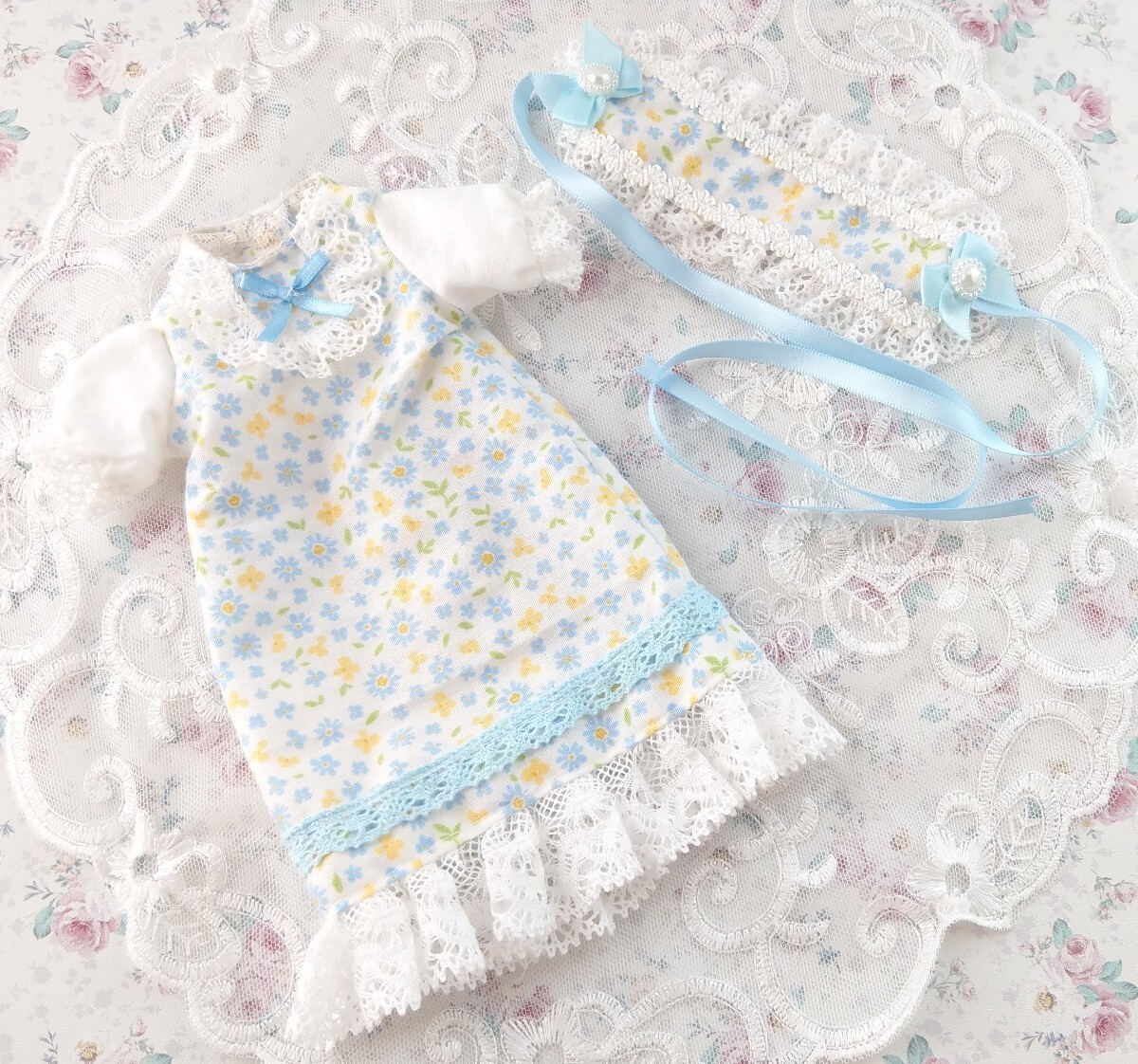 - *幼SD等に 1/6サイズ お洋服 OF Aライン ワンピース セット*【Blue Marguerite】