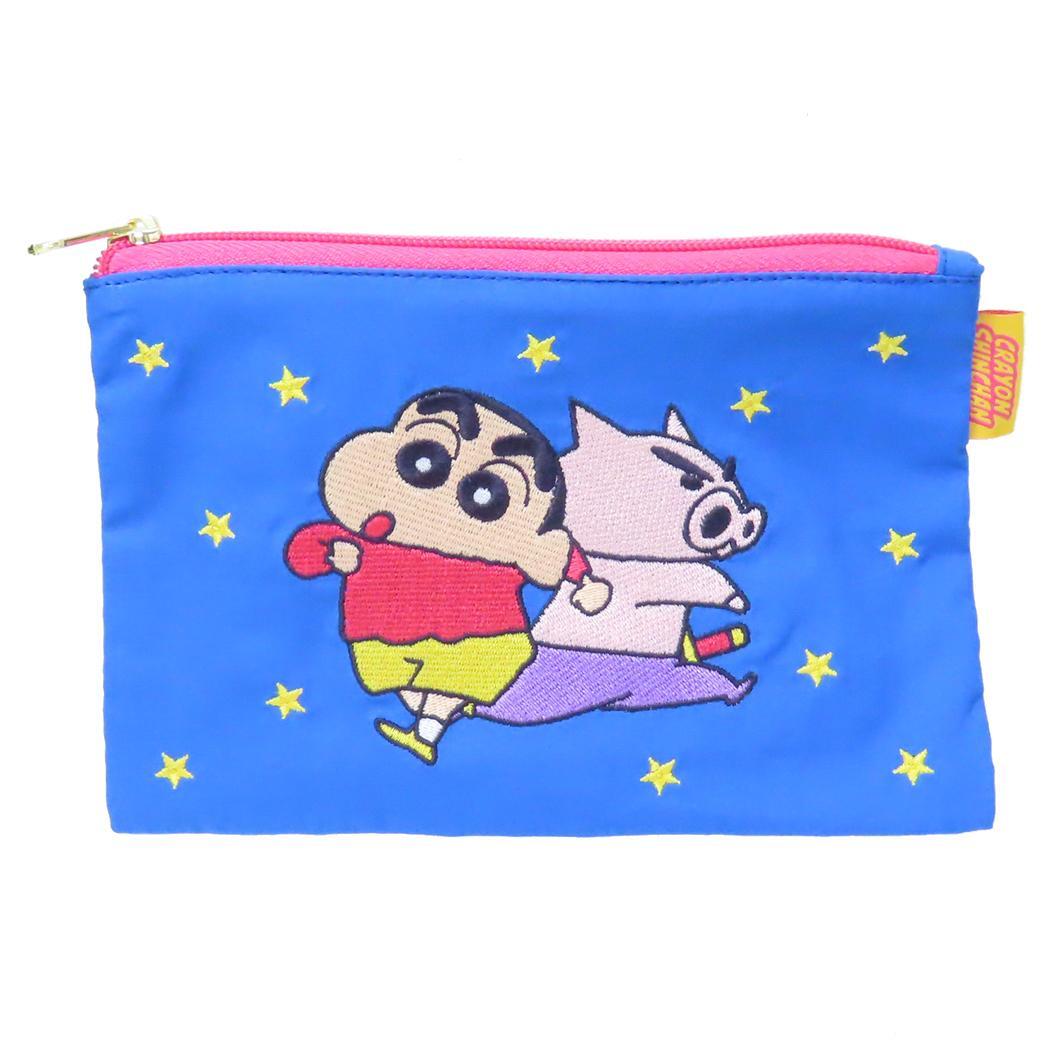 - クレヨンしんちゃん コスメポーチ 刺繍ポーチ しんのすけ&ぶりぶりざえもん スモールプラネット メイクポーチ 化粧ポーチ フラット