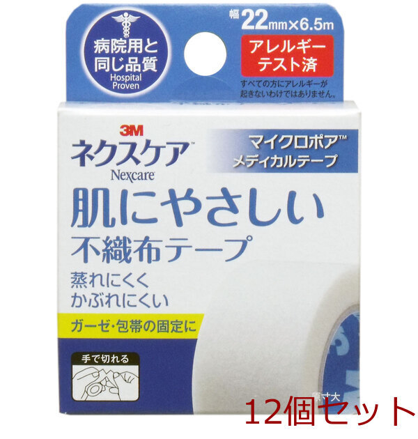 - 3M ネクスケア マイクロポア 不織布テープ ホワイト 22mm×6.5m 12個セット