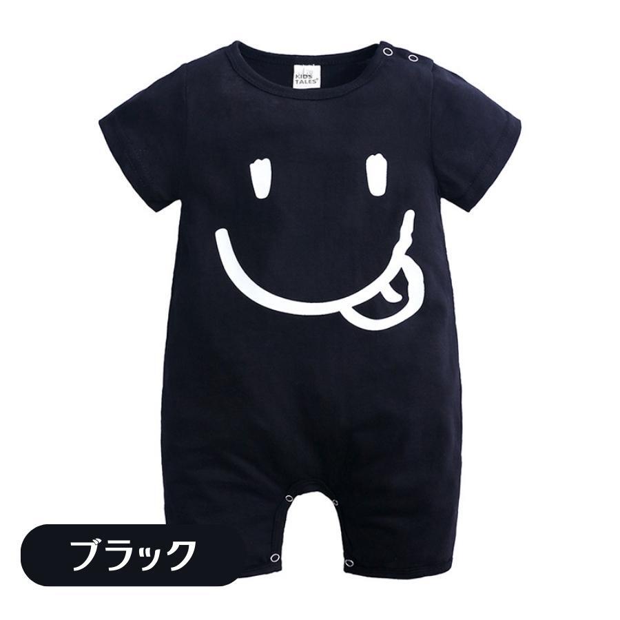 > 半袖 5分丈 ロンパース やわらか素材 デザイン柄 韓国子供服 おしゃれ 乳幼児 キッズ ベビー服 (73, ブラック)