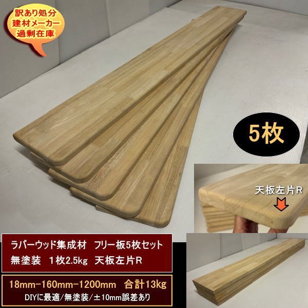 > ラバーウッド集成材 カウンター天板 左片R 18-160-1200mm 5枚 合計約13k 無塗装 天板厚18mm 強度抜群 送料無料 訳あり処分 DIY