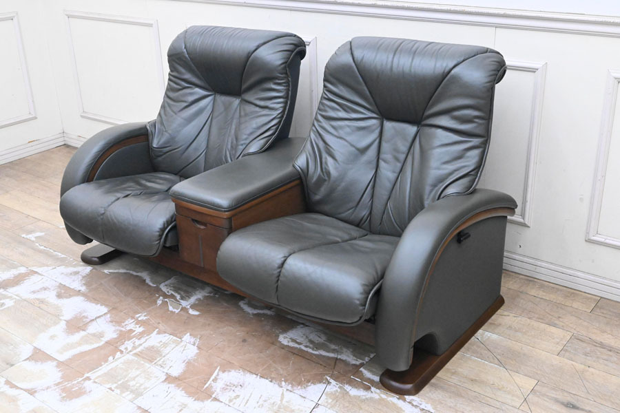 - AC05 高級家具の老舗 富士ファニチア 本革 ハイバック リクライニングソファ 2Pソファ 二人掛け パーソナルチェア 袖付