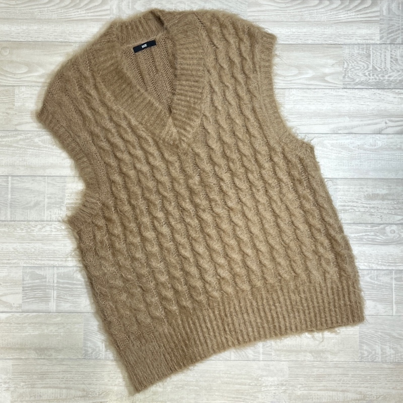 - HARE/ハレ/モヘヤケーブルニットベスト/長毛ケーブル編み/モヘアブレンド/オーバーサイズニットベスト/Fサイズ