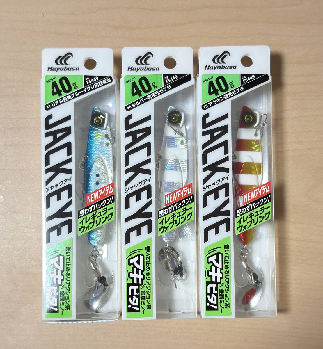 - 1本700円!ハヤブサ ジャックアイ マキピタ40g 3本 アカキン夜光ゼブラ リアル魚鱗BLイワシ網目夜光 シルバー青夜光ゼブラ