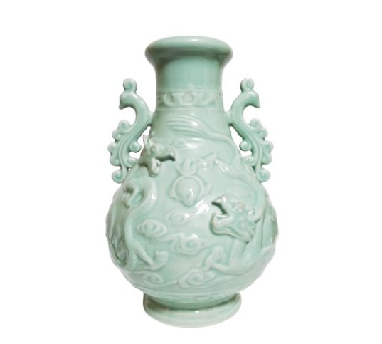 - 中国龍泉 青瓷 陽刻龍紋 龍泉窯 特大 花瓶 美術品 骨董品 アンティーク