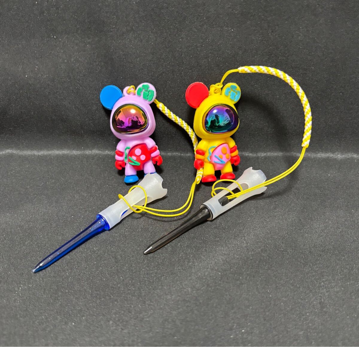 > ☆送料無料☆新品未使用☆ キャラクター付ゴルフティー 2個セット 紛失防止 ベアー クマ 宇宙飛行士(No.03)