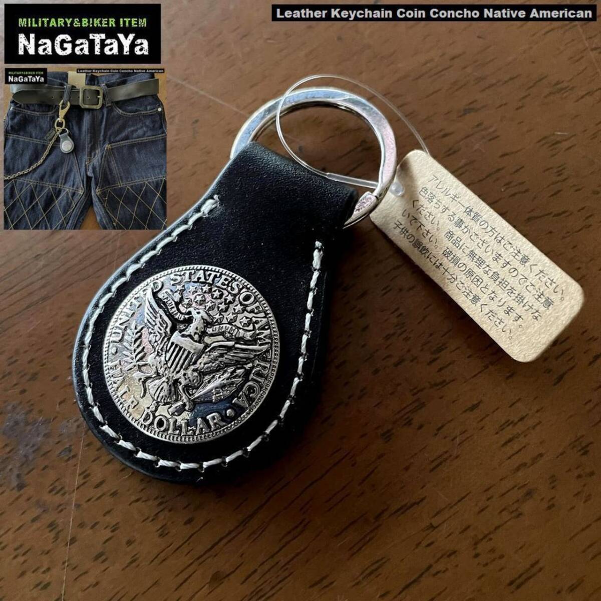 - 本革 ネイティブアメリカン レザー アメリカン コイン コンチョ キーホルダー ブラック インディアン系 メンズ レディース