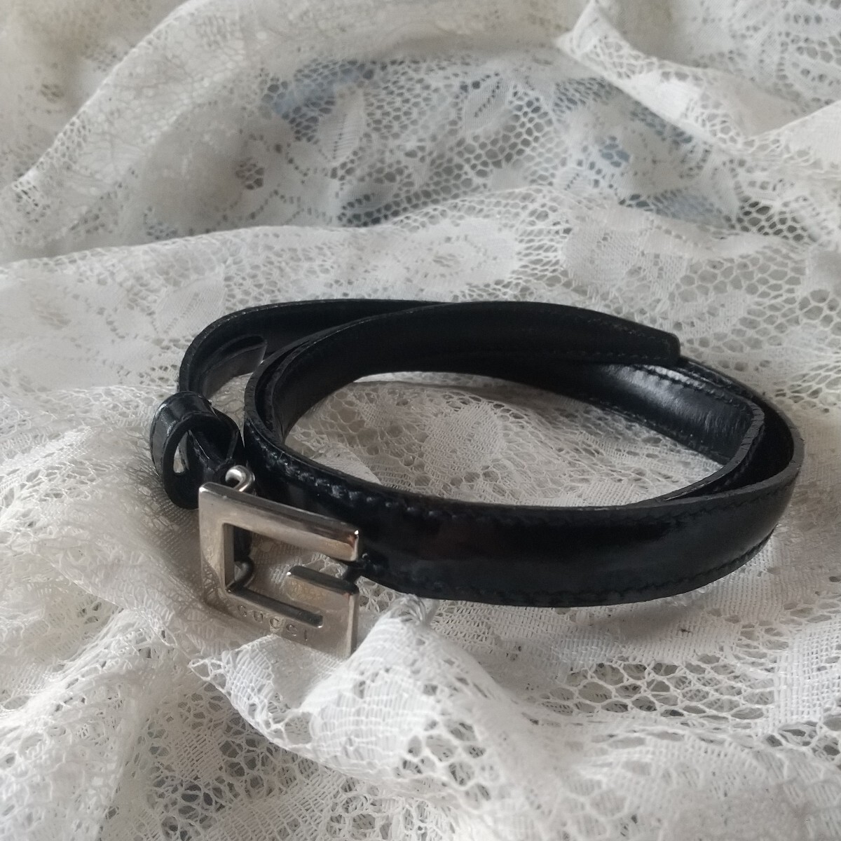 - 奇跡 未使用 オールド GUCCI エナメル ベルト 黒 Gマークのバックル 綺麗 激安