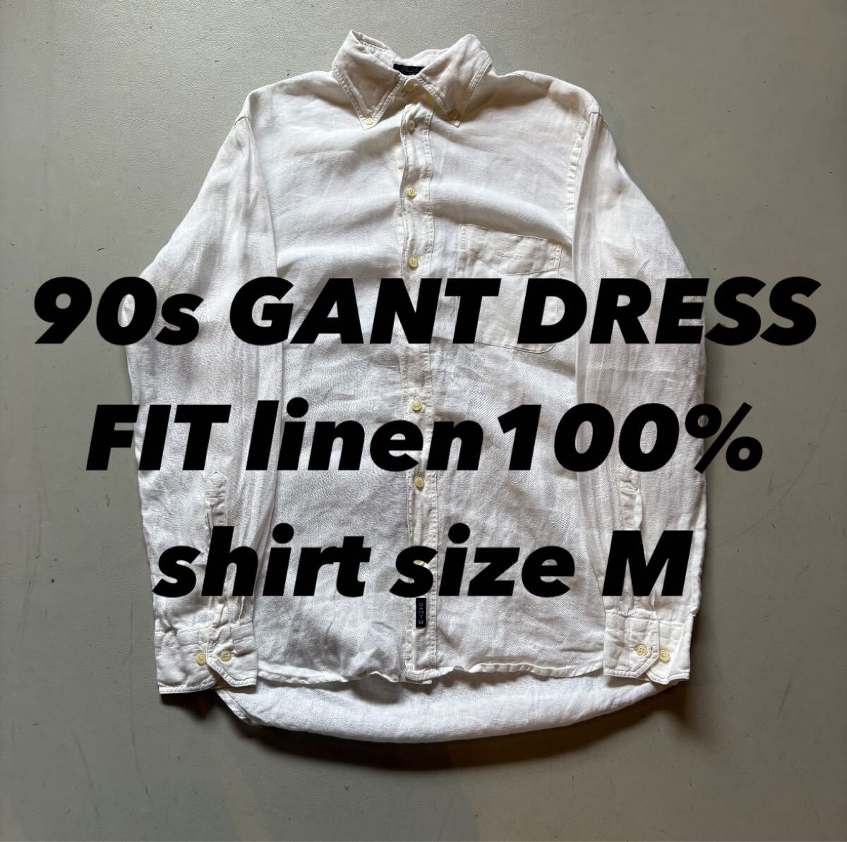 > 90s GANT DRESS FIT linen100% shirt size M 90年台 ガント ドレスフィット リネン 100% 90s
