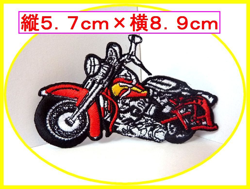 > アイロン 接着 刺繍 ワッペン!ハーレー風 バイク 赤 左向き!車 バイク カワサキ ホンダ ヤマハ ハーレーダビッドソン