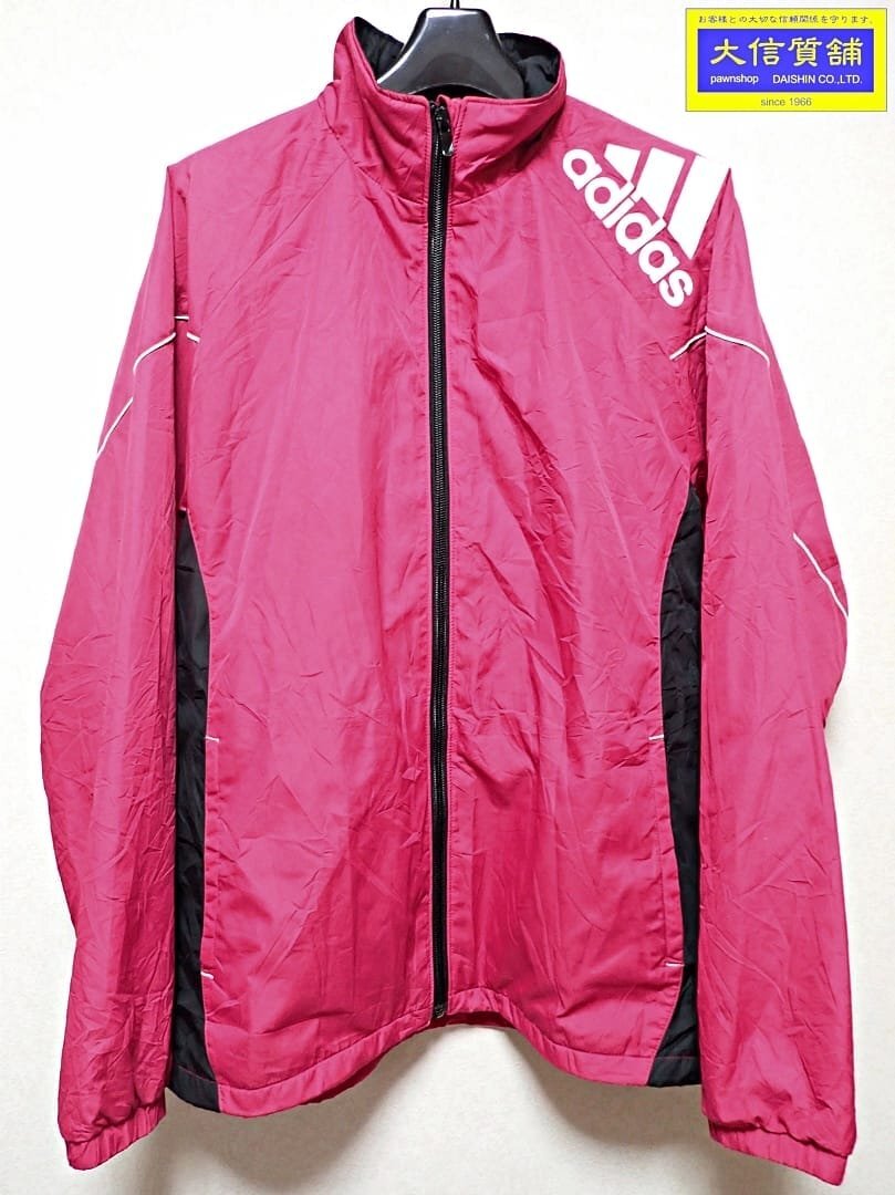 > ADIDAS アディダス CLIMAPROOF ウインドブレーカー S パープル ショルダーロゴプリント 中古B+ 【送料無料】 A-7932