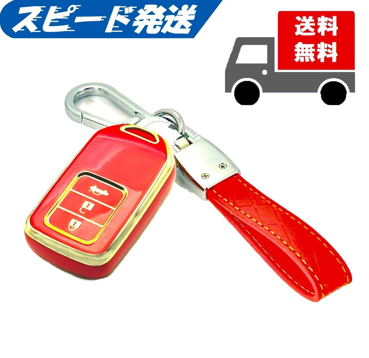 > ★送料無料★キーホルダー付き★HONDA ホンダ用 キーケース キーカバー★レッド3ボタン★AタイプⅡ