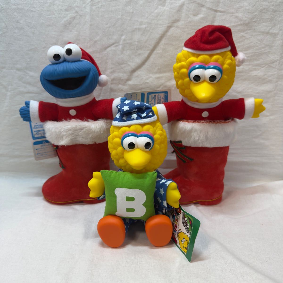 - 送料無料 レア レトロ セサミストリート クリスマスマスコット おやすみマスコット 3個セット ☆ ぬいぐるみ ソフビ クッキーモンスター