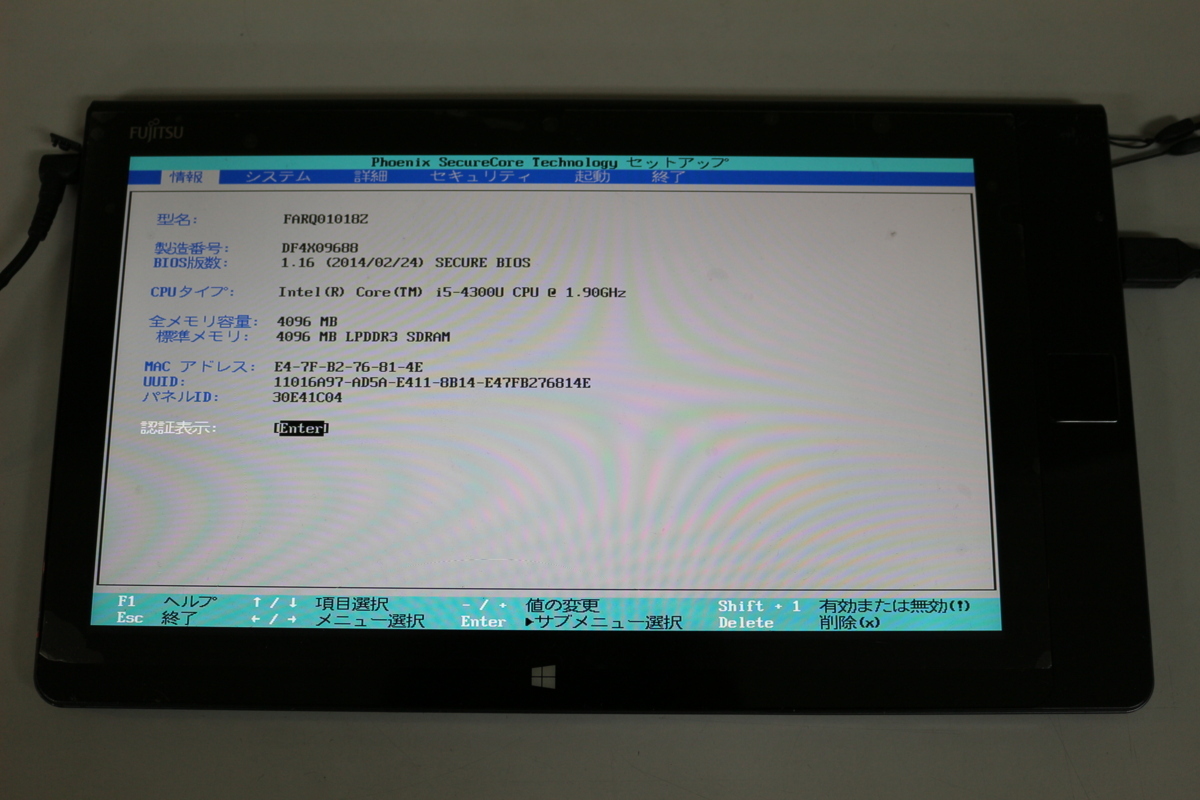 > ジャンク品タブレット 富士通 ARROWS Tab Q704/PV FARQ01018Z i5 メモリ4GB SSD128GB 12.5inch カメラ内蔵 OS無 起動確認済 代引き可