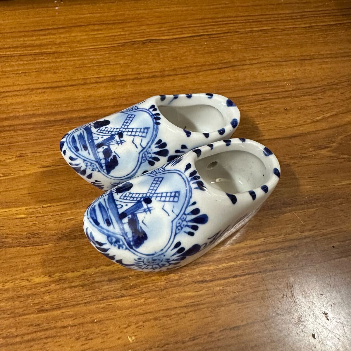 - オランダ土産 陶器製 ミニチュア木靴ペア Holland 手描き デルフト風 飾り インテリア