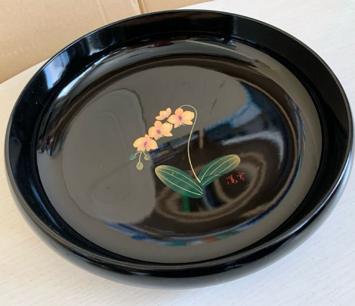 - 木製お盆 蘭の絵 黒