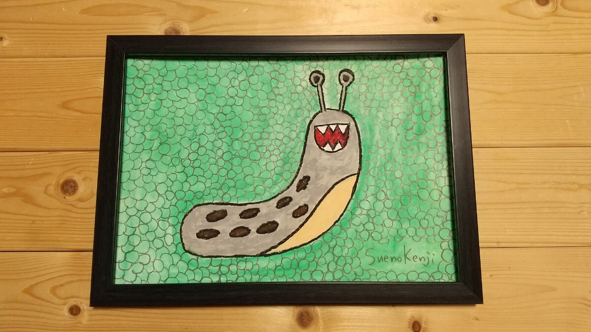 > 【ナメクジ】手描き 肉筆 クレヨン画 絵画 A4サイズ 797,Crayon painting, oil pastel painting, original art 現代アート 現代美術