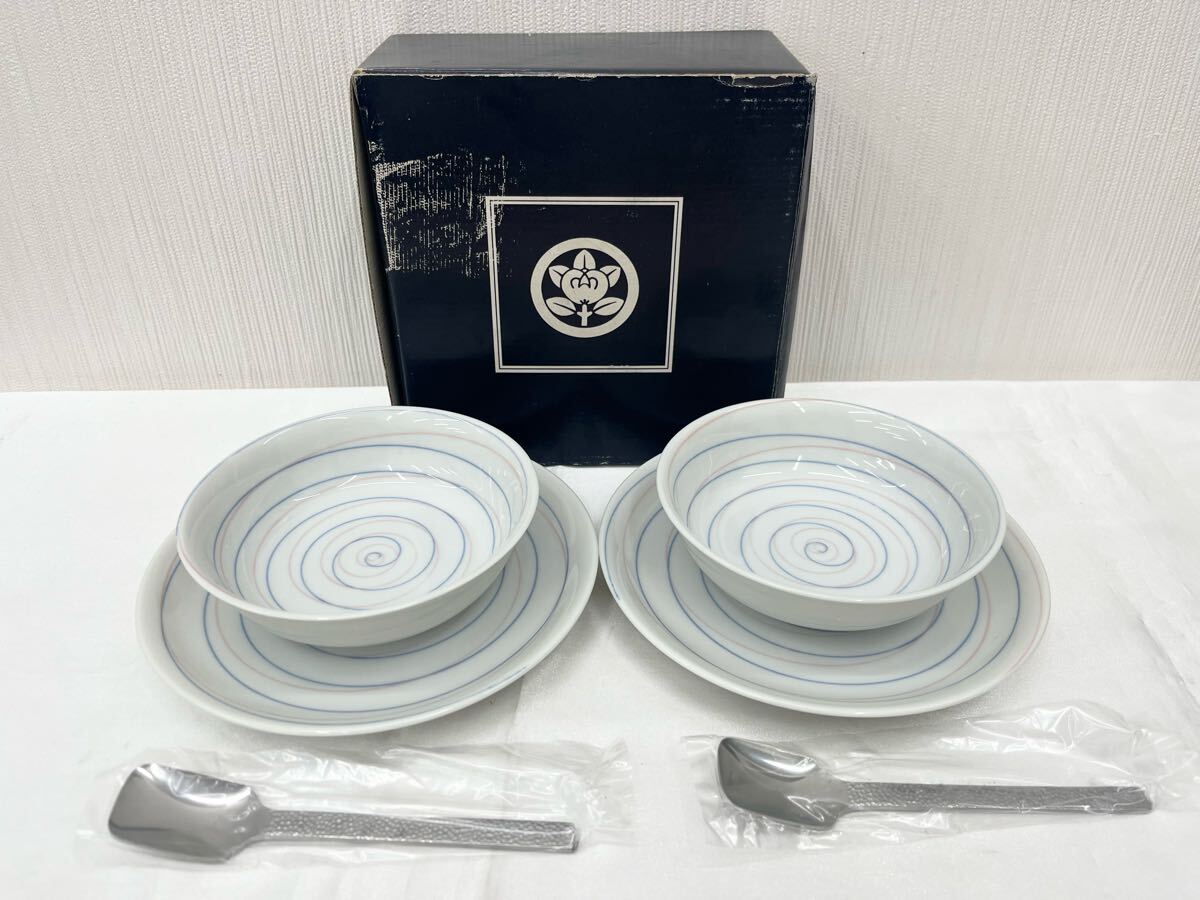 - たち吉 創作陶器 水紋ペアーデザートセット 〇自宅保管品
