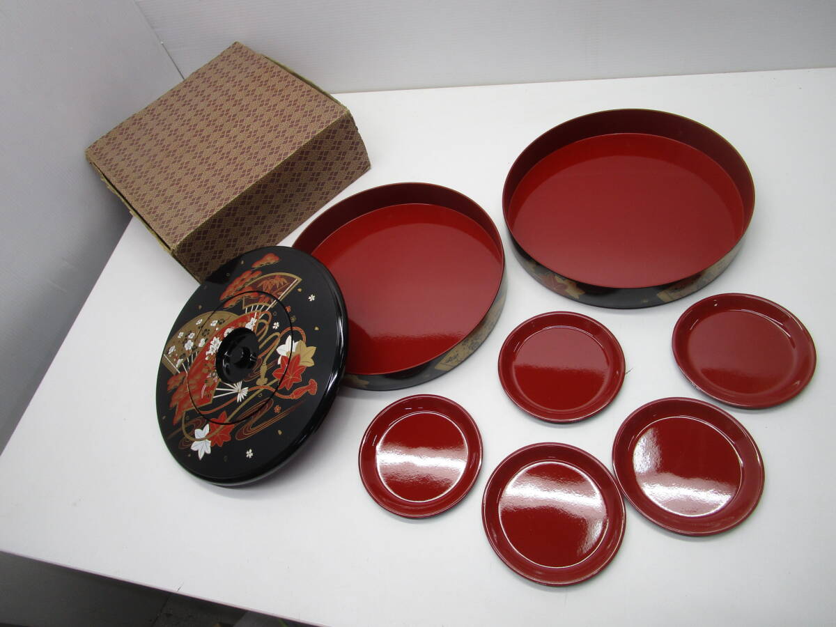 - P018★寿司桶 寿司重2段中皿5枚セット 蓋付き★未使用品