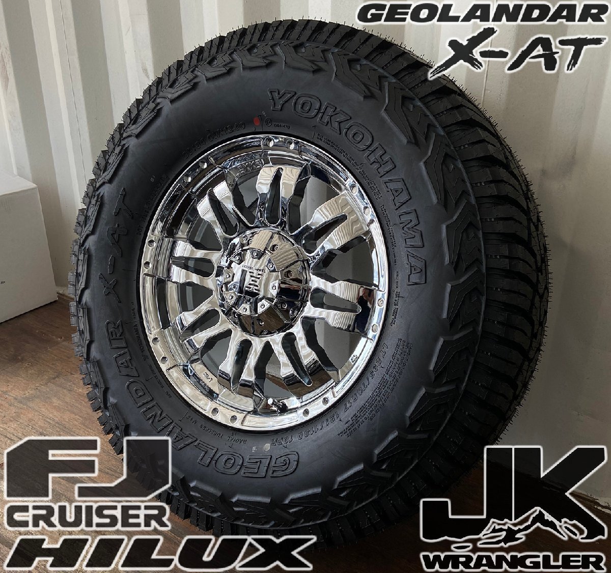 - 5本セット(背面用付き)JK JL ラングラー タイヤホイールセット 17インチ LEXXEL Balano ヨコハマ ジオランダーX-AT 265/70R17 285/70R17