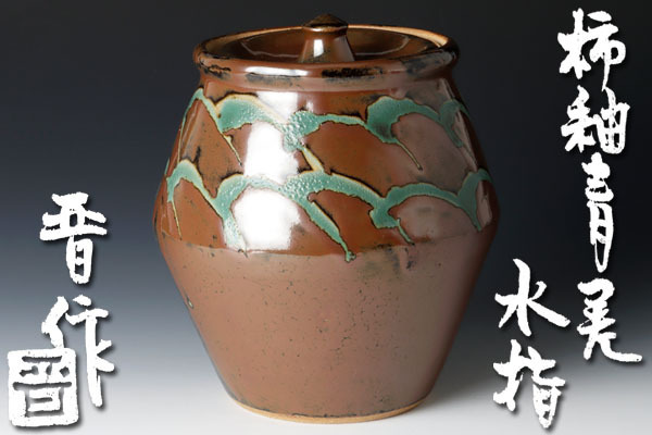 - ★【古美味】浜田晋作造 柿釉青差水指 茶道具 保証品 z2IC