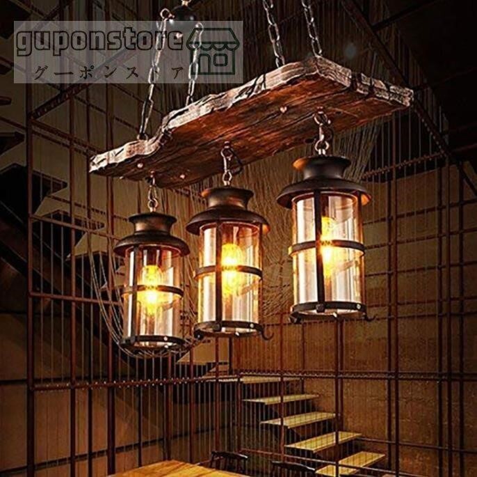 - ペンダントライト レトロ 天然木 ランタン型 北欧風 おしゃれ カフェ インテリア照明 天井照明 LED 3灯 デザイン モダン