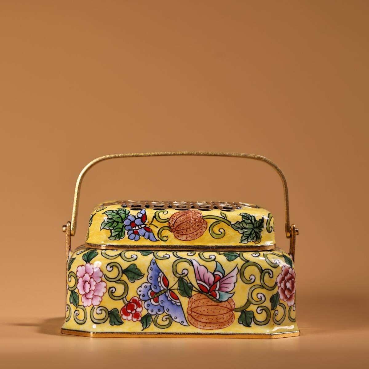 - 蔵友旧蔵出 銅製 景泰藍 琺瑯彩 瓜果紋 熏香爐 貴重品 置物 古賞物 密宗密教 供養品 仏教美術品