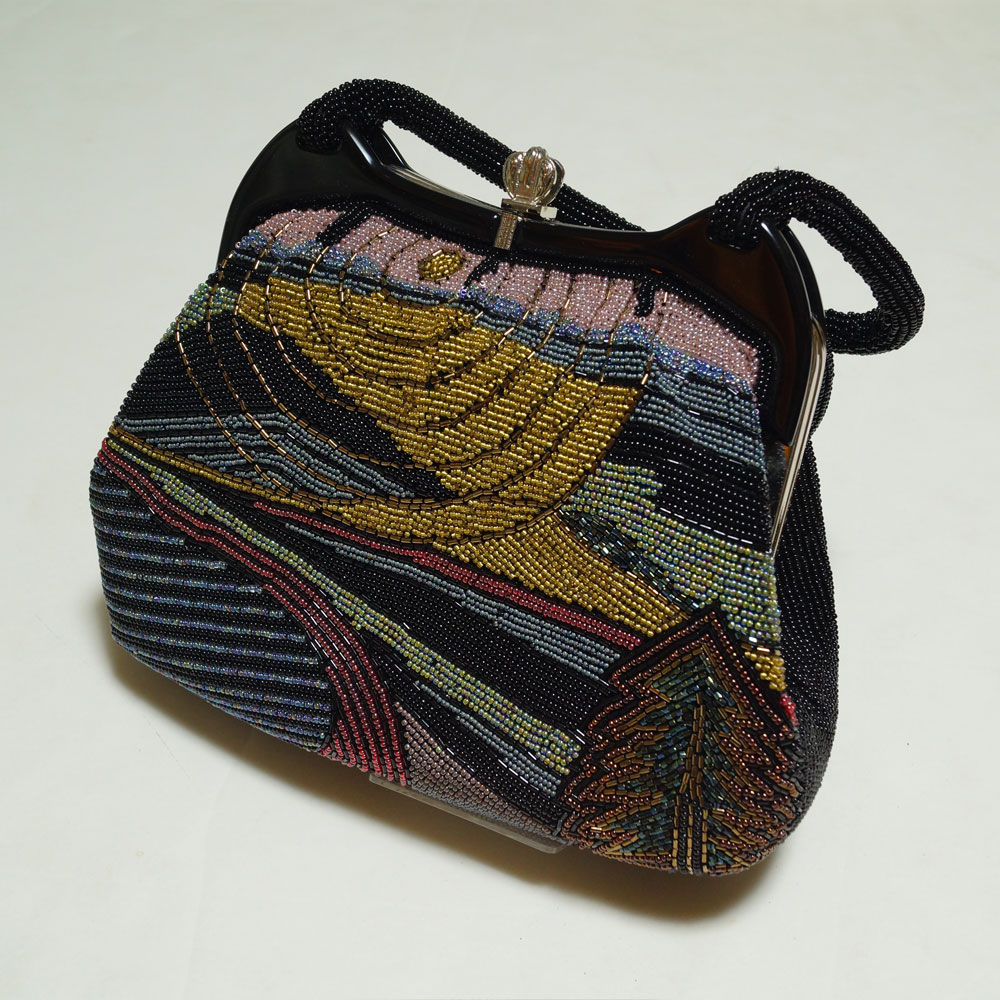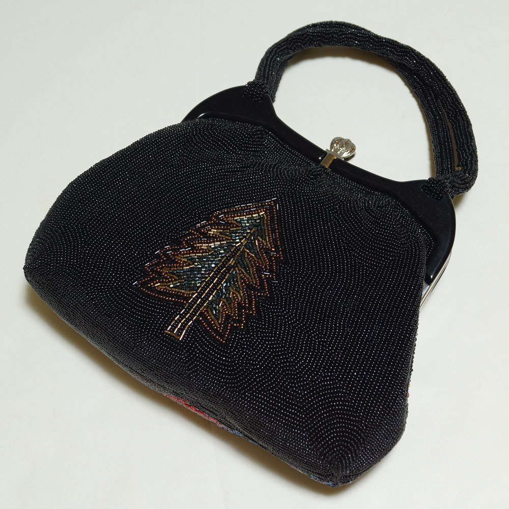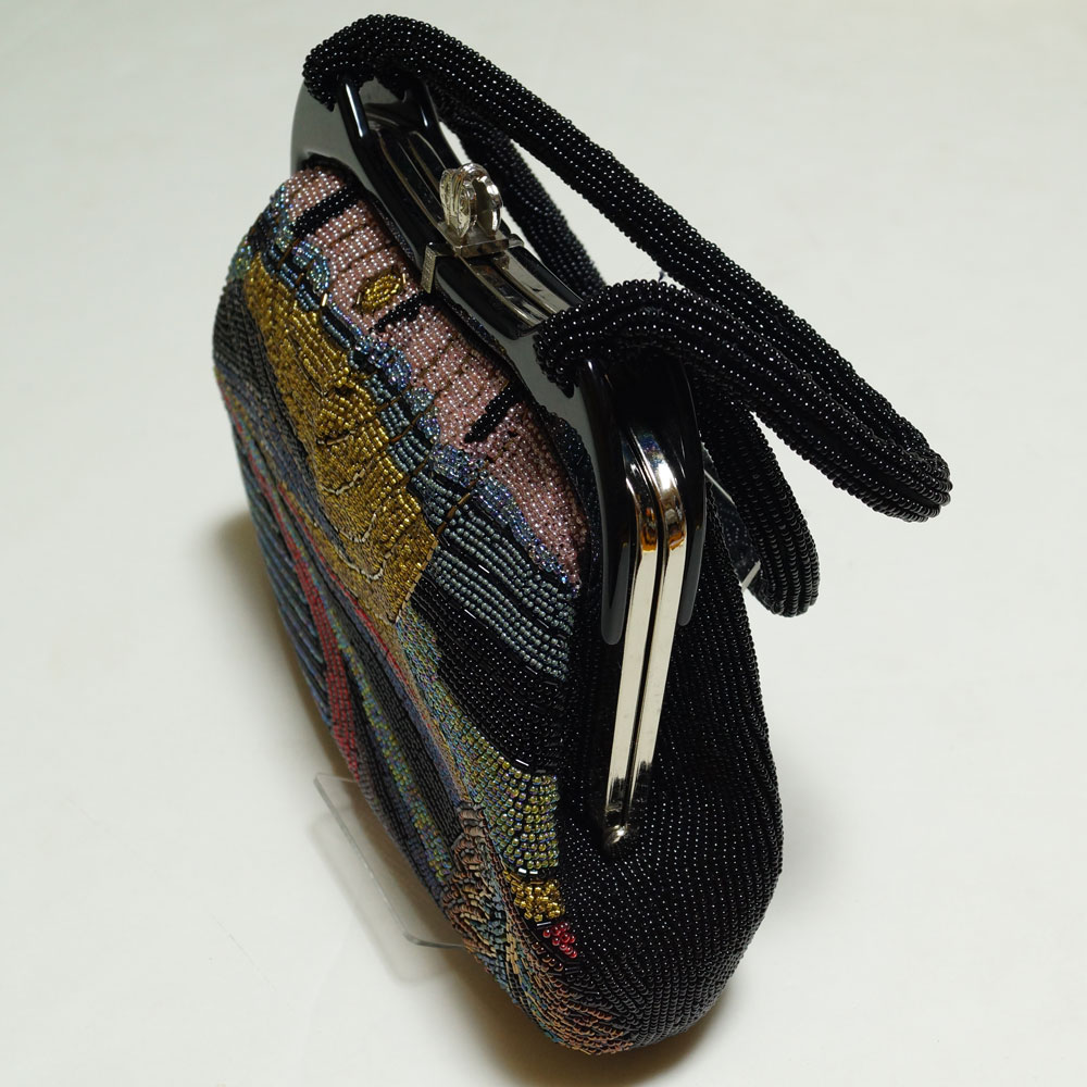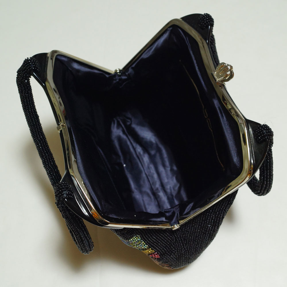 - ビーズバッグ 和装バッグ がま口 ビーズ刺繍 手刺繍 日本製 ビーズ 着物バッグ レディース 和装 和服 おしゃれ レトロ 中古 リサイクル着物